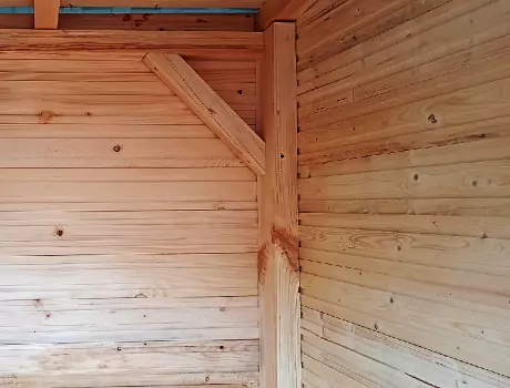 Специальные стабилизаторы наклона (укосины) не дают каркасному строению наколониться, что делает конструкцию более жесткой. Даже со временем при сильном ветре Ваше строение не накренится и будет стоять как вкопаное.